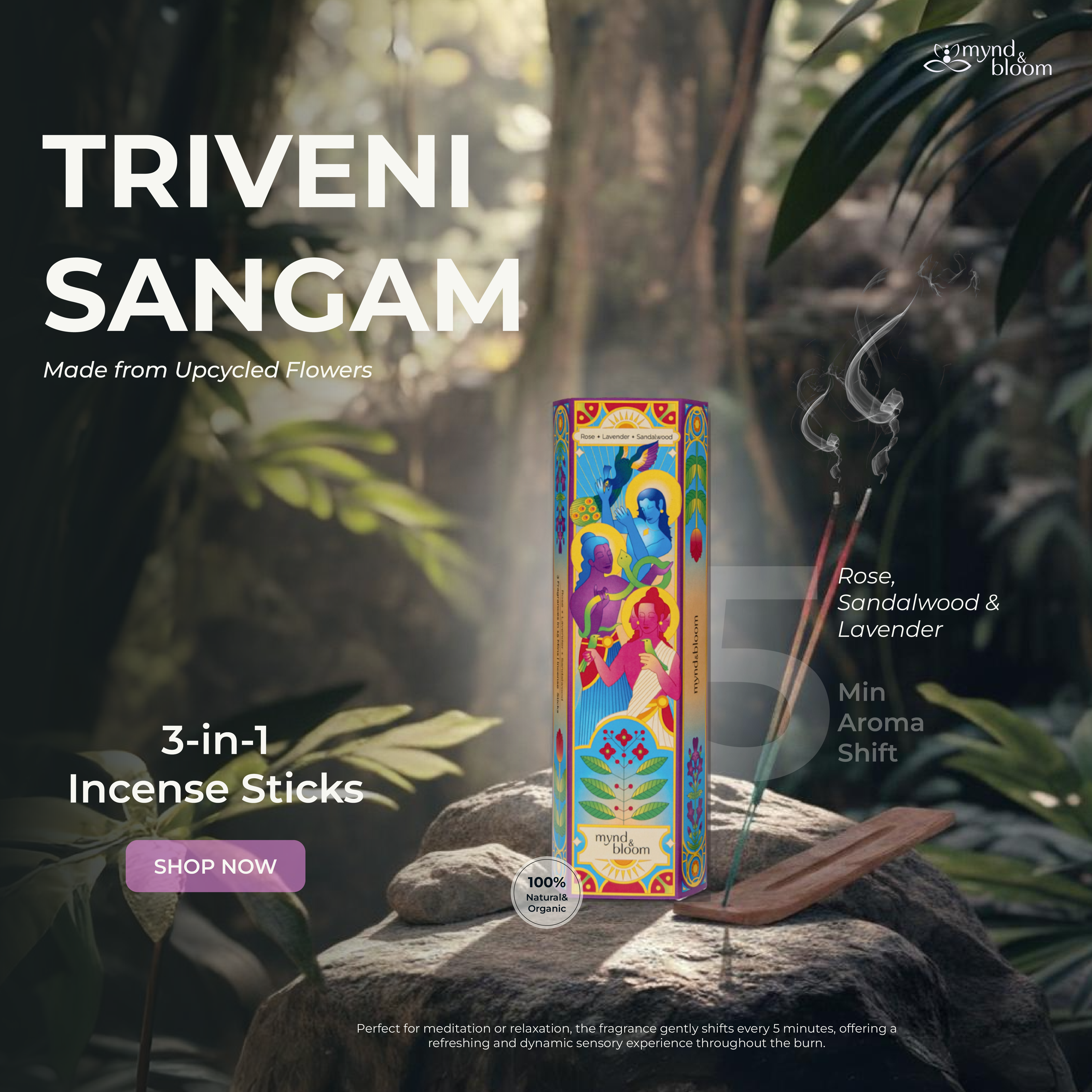 100% natural ingredients sourced responsibly from temple recycled flowers - no charcoal, no toxins, no artificial dyes. Every stick, cone, and blend is clean, pure, and crafted to respect your home and health.
