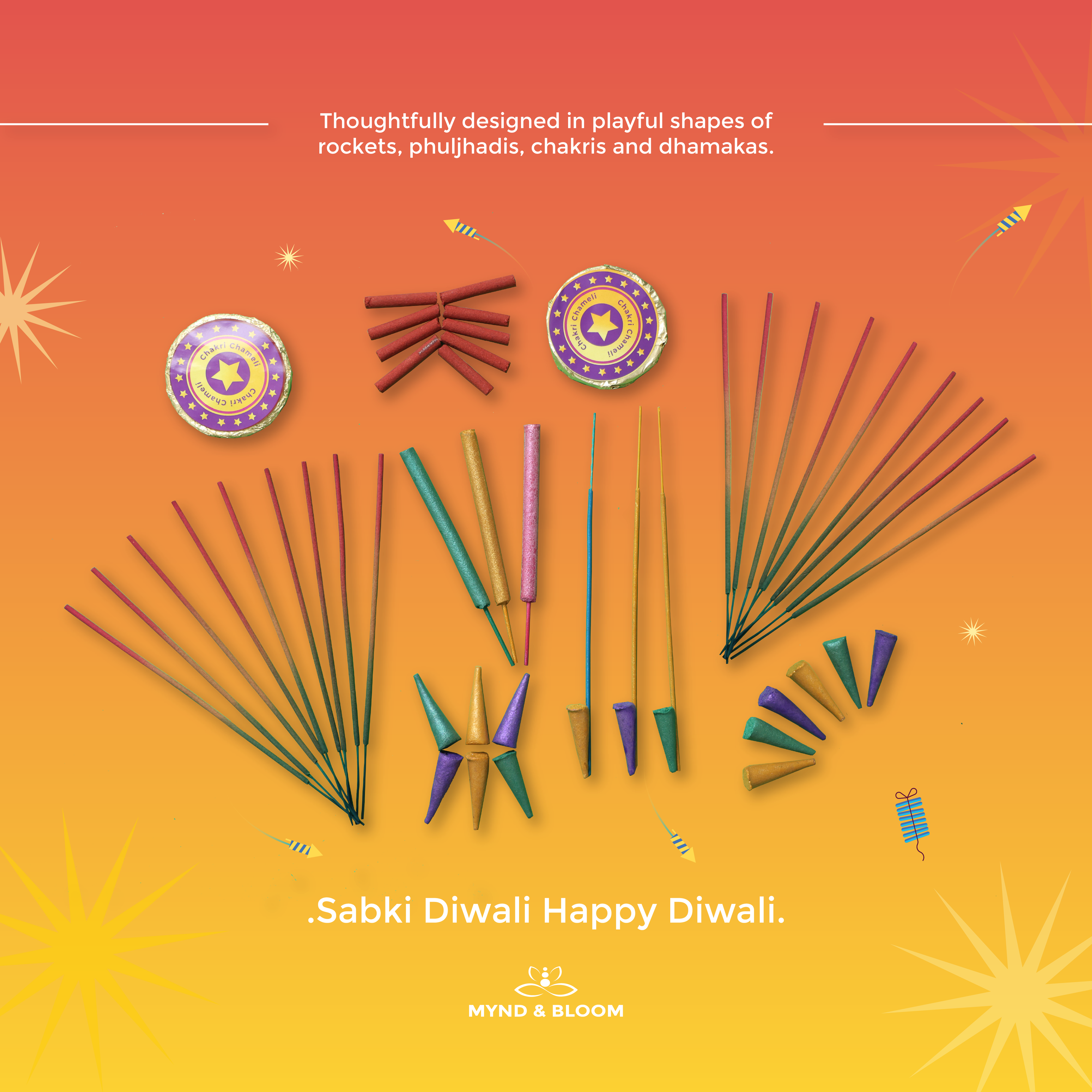 Celebrate Diwali with a new kind of sparkle—one that's gentle on the ears and the planet. Inspired by the magic of traditional fireworks, this gift kit offers a fragrant, noise-free way to enjoy the festive season. Made with 100% natural ingredients, it’s all the nostalgia of fireworks without any of the noise.